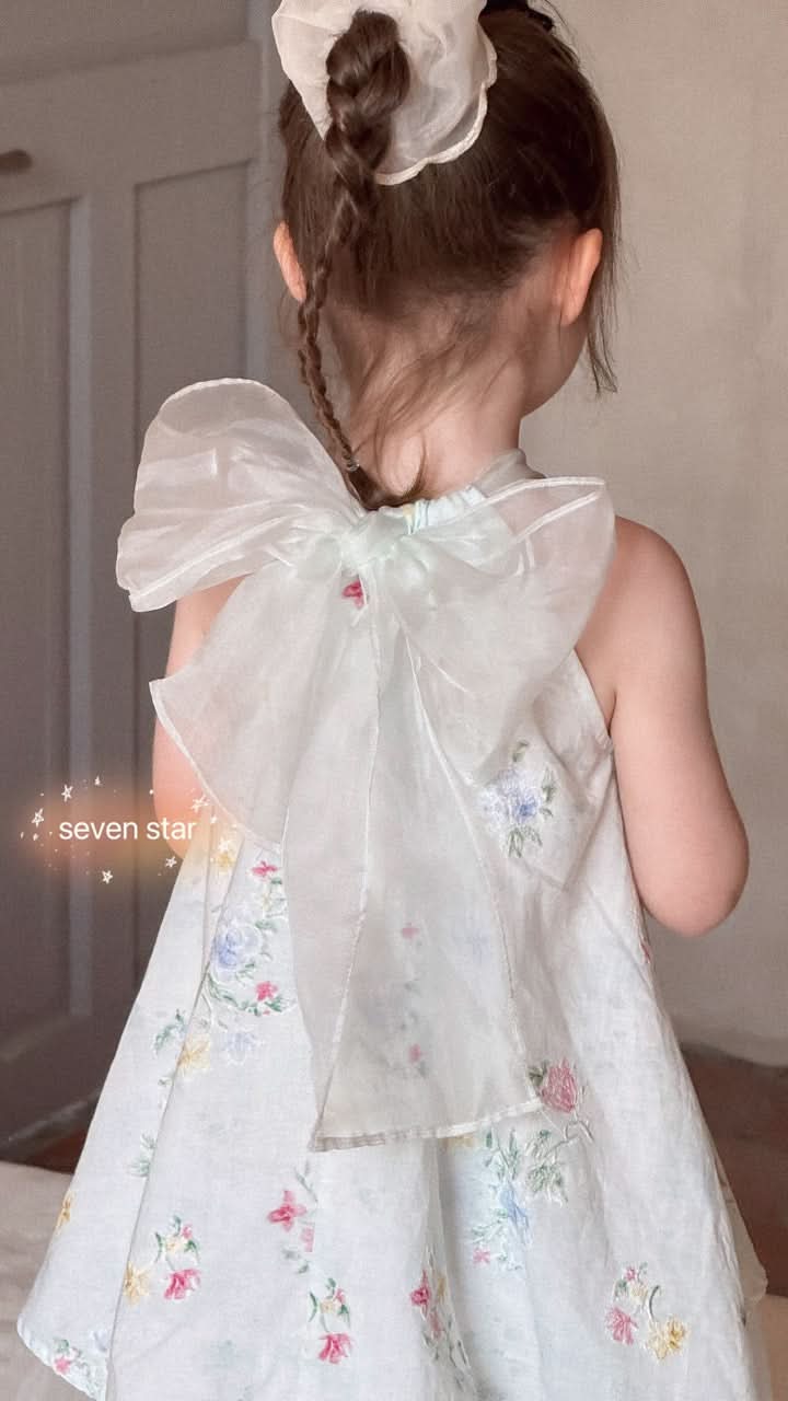 Bow Tie Floral Embroidered Dress