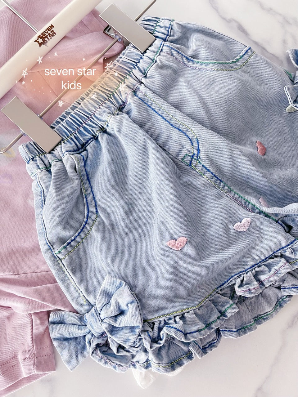 Hearts Embroidery Denim Shorts