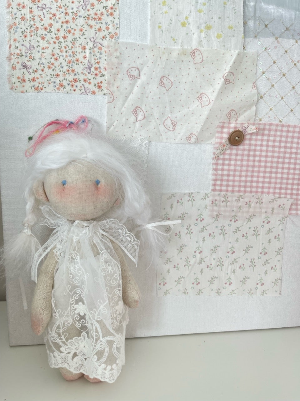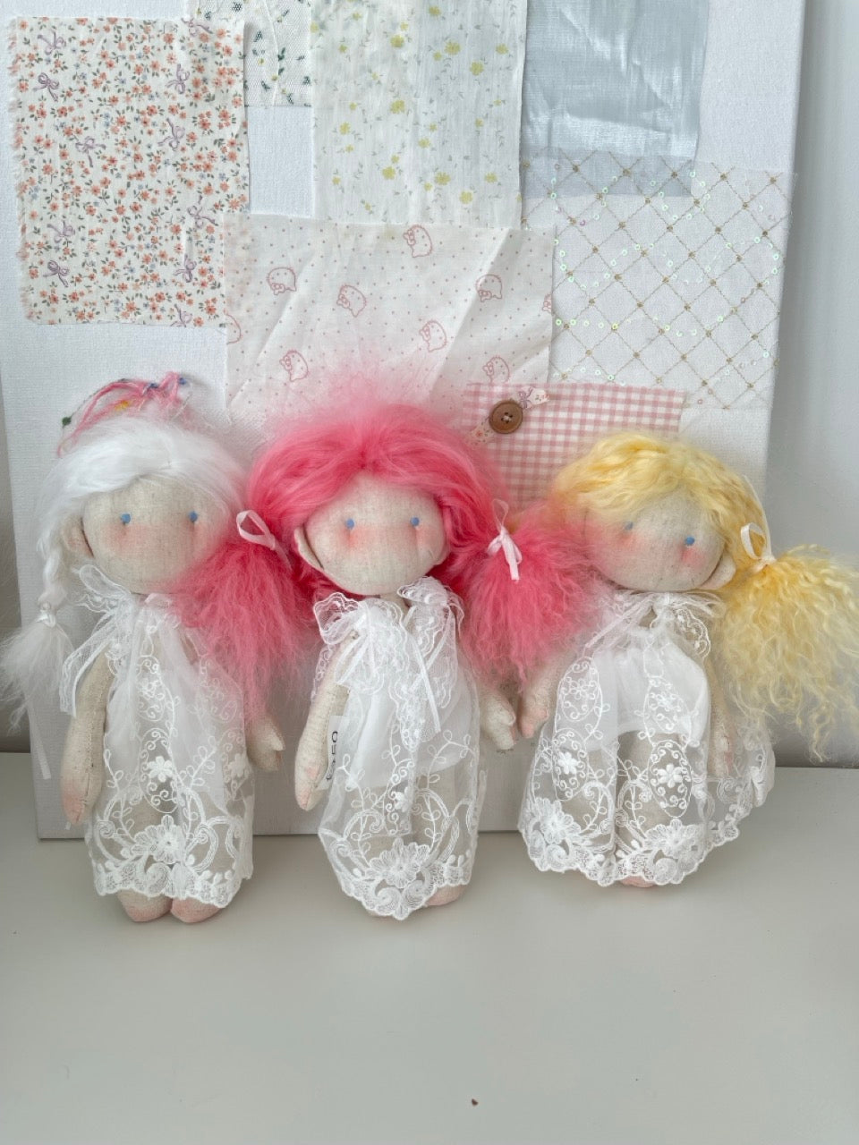 - Hand-made Dolls, hair on a doll is made of pure wool such as mohair or boucle, ply wool or cotton.