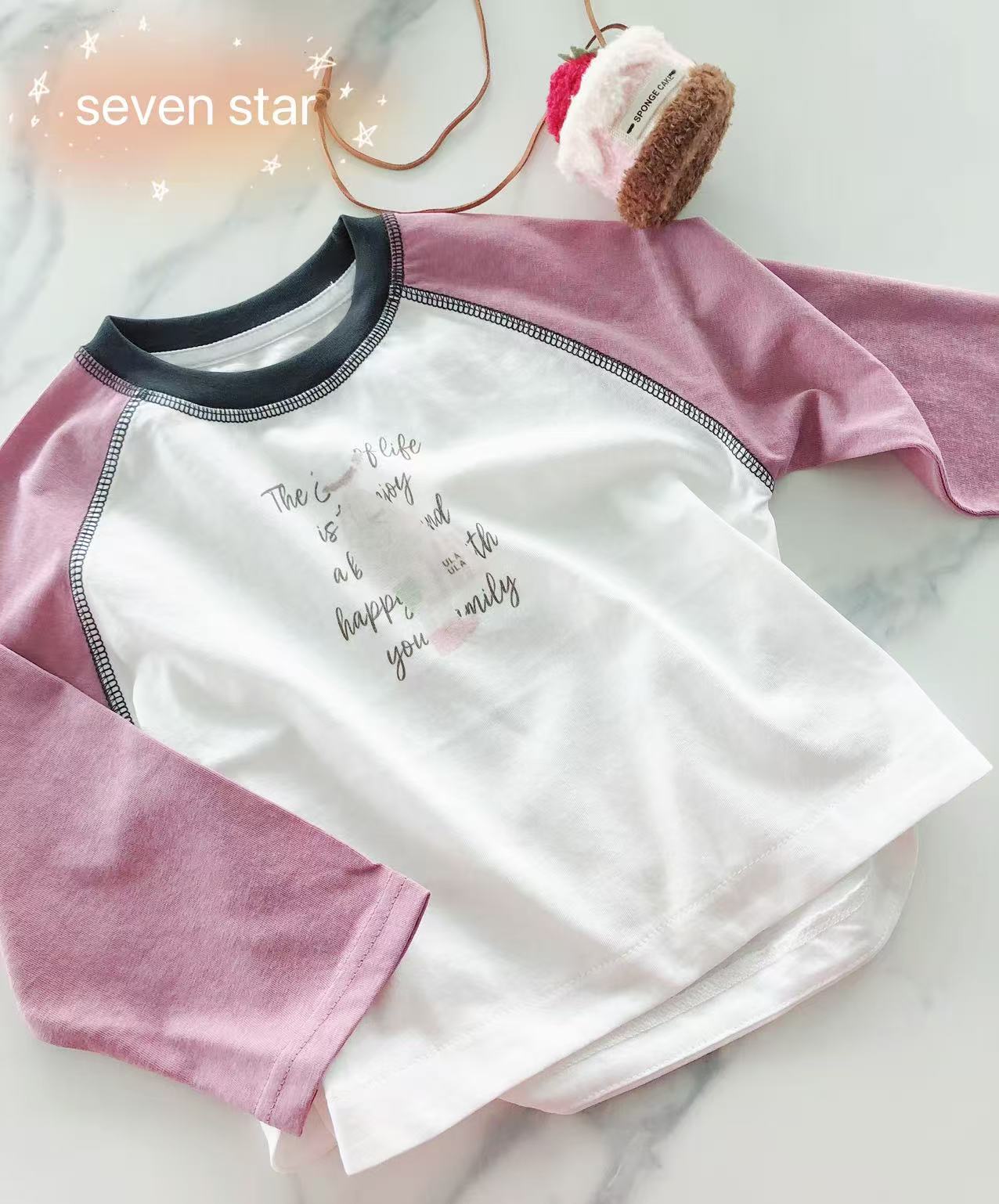 - Raglan sleeves with two colors matching.
