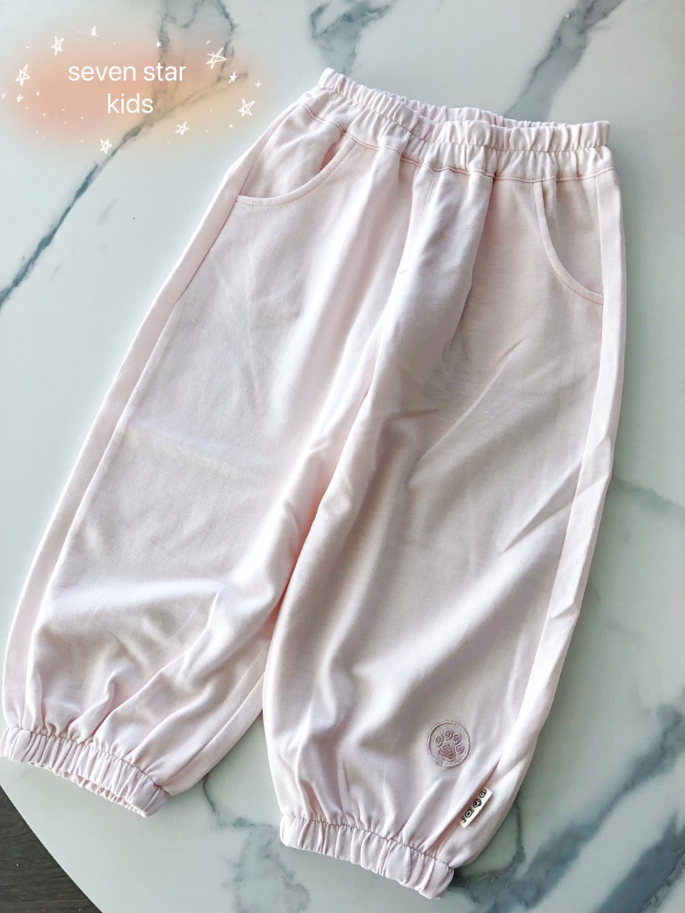 Puppy Paws Embroidery Sweatpants-Pink